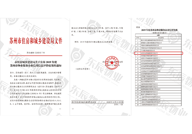 2019年度蘇州市物業(yè)服務(wù)企業(yè)信用等級A級